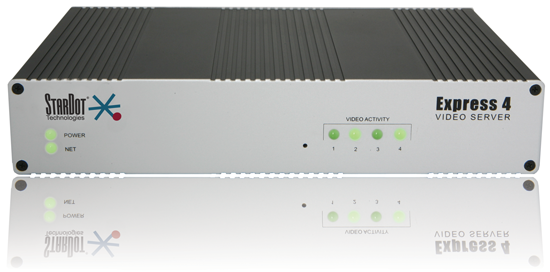 StarDot introduces an affordable solution for viewing multiple cameras over the Internet and local area networks. The Express 4 Video Server is a small standalone server that converts up to four standard analog CCTV camera video sources to compressed digital video streams. The Express 4 can simultaneously stream four video streams at 30 frames per second per channel (full D1 resolution) and includes looping outputs.